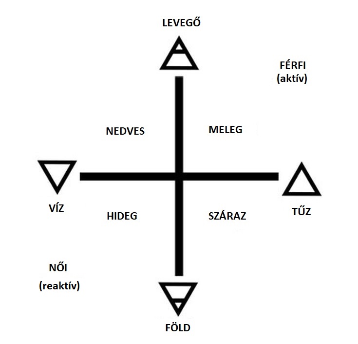 A 12 csillagjegy 3 dolog keveredéséből jön létre, ezek az elem (Tűz, Föld, Levegő, Víz), az ősminőség (kardinális, szilárd, változó), illetve a polaritás (kiáradó vagy befogadó). A világot felépítő elemekről először Empedoklész írt Tetraszomia című művében i.e. 5.században. Az elemeket a dolgok gyökerének nevezte és azt feltételezte, hogy ezek keveredéséből áll a világmindenség. Majd Arisztotelész az elemekhez két-két tulajdonságot rendelt a hideg, meleg és nedves, száraz tulajdonságok közül.
